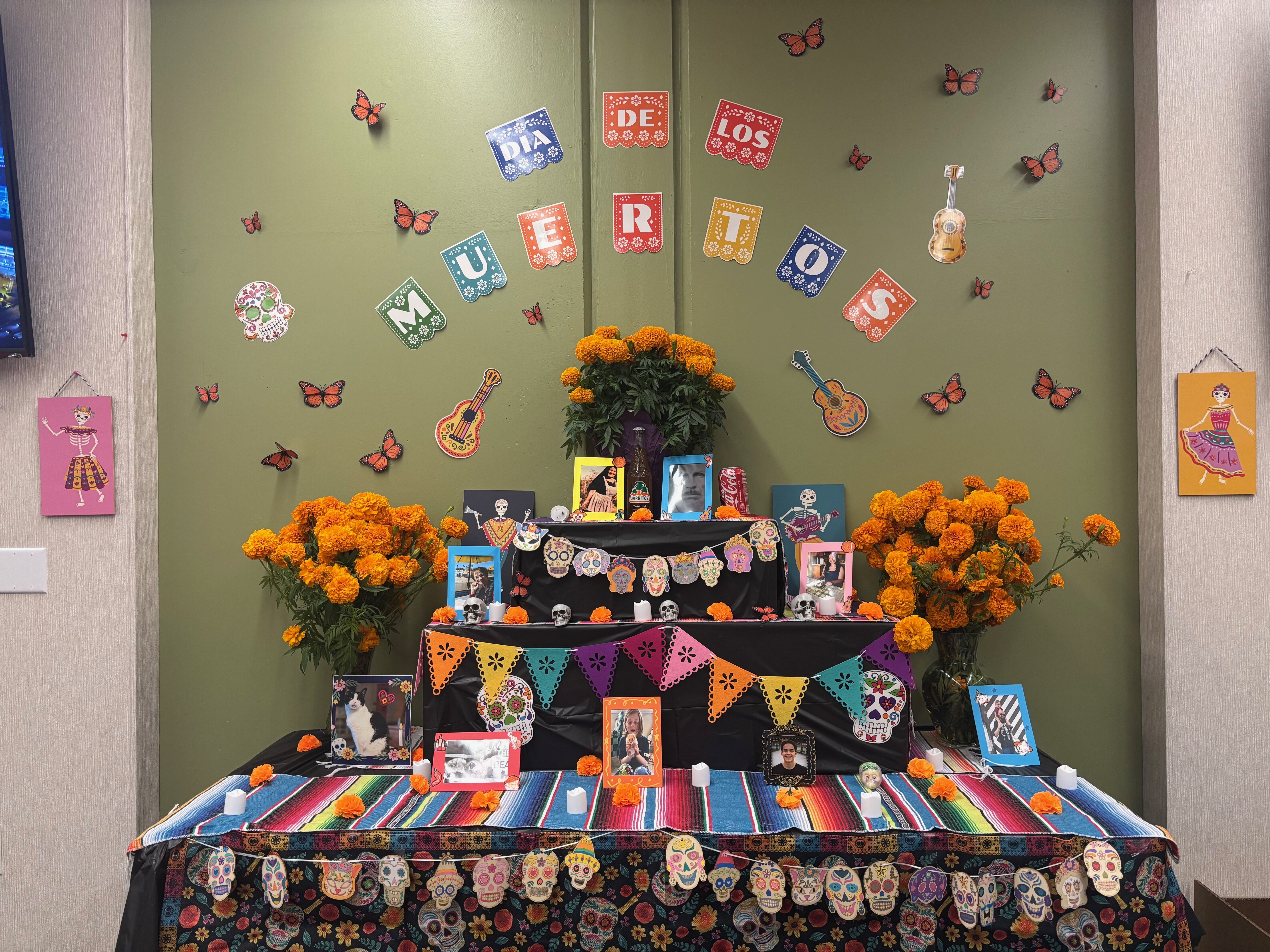 In addition, an ofrenda (altar) was created in the staff room to honor and display pictures of loved ones. Both students and staff contributed, making it a meaningful and heartfelt tribute.