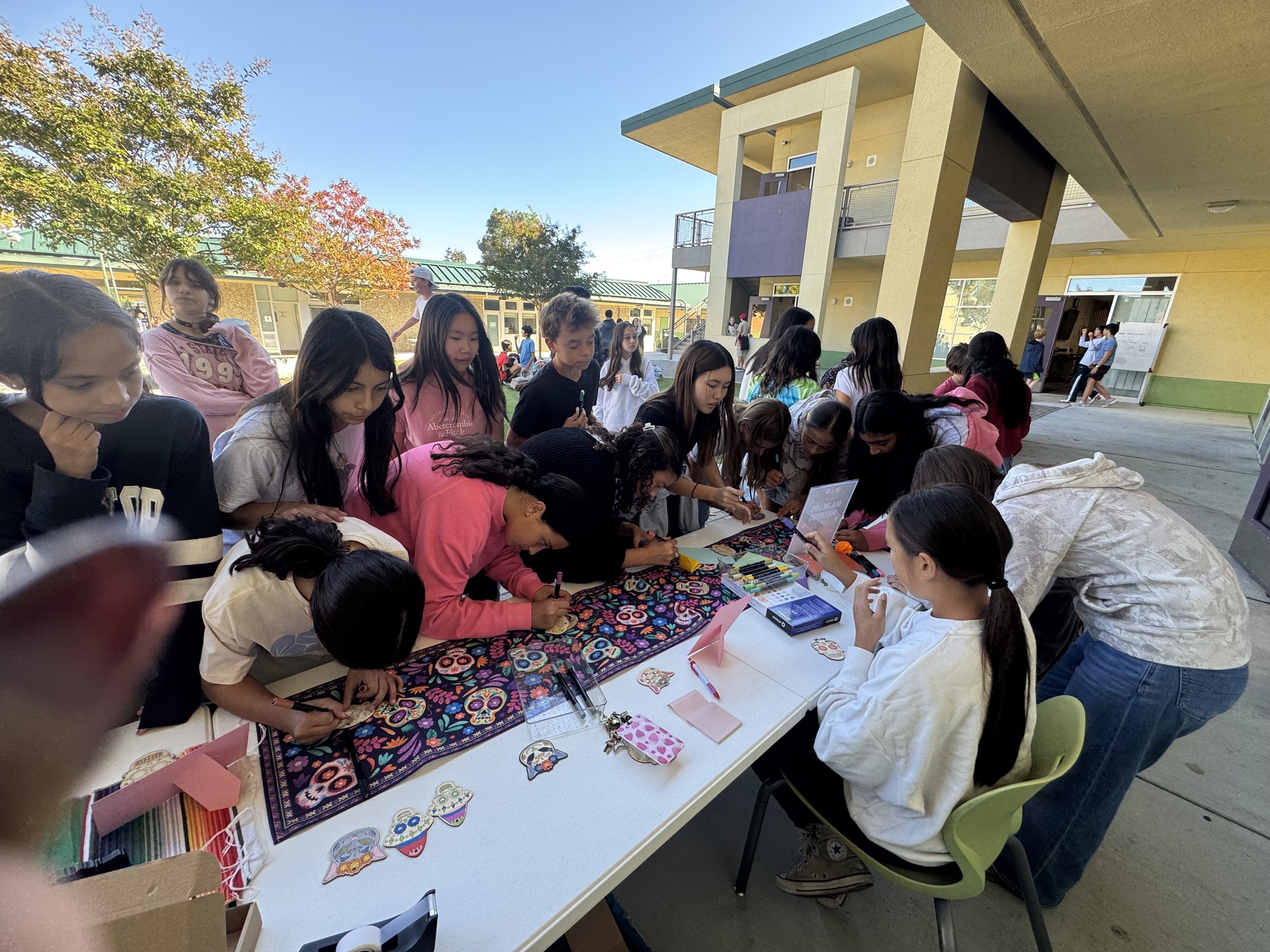 On Monday, we celebrated Día de los Muertos (Day of the Dead) with fun activities during lunch, including frame decorating and coloring sugar skulls.