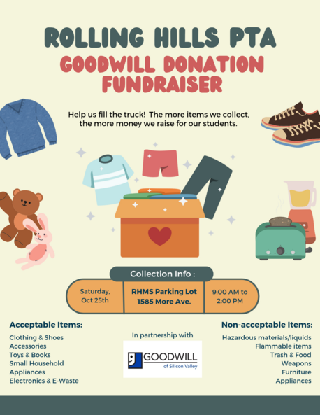 RHMS PTA receives a monetary donation the more full the Goodwill truck becomes.  This funding directly supports RHMS students and programs.