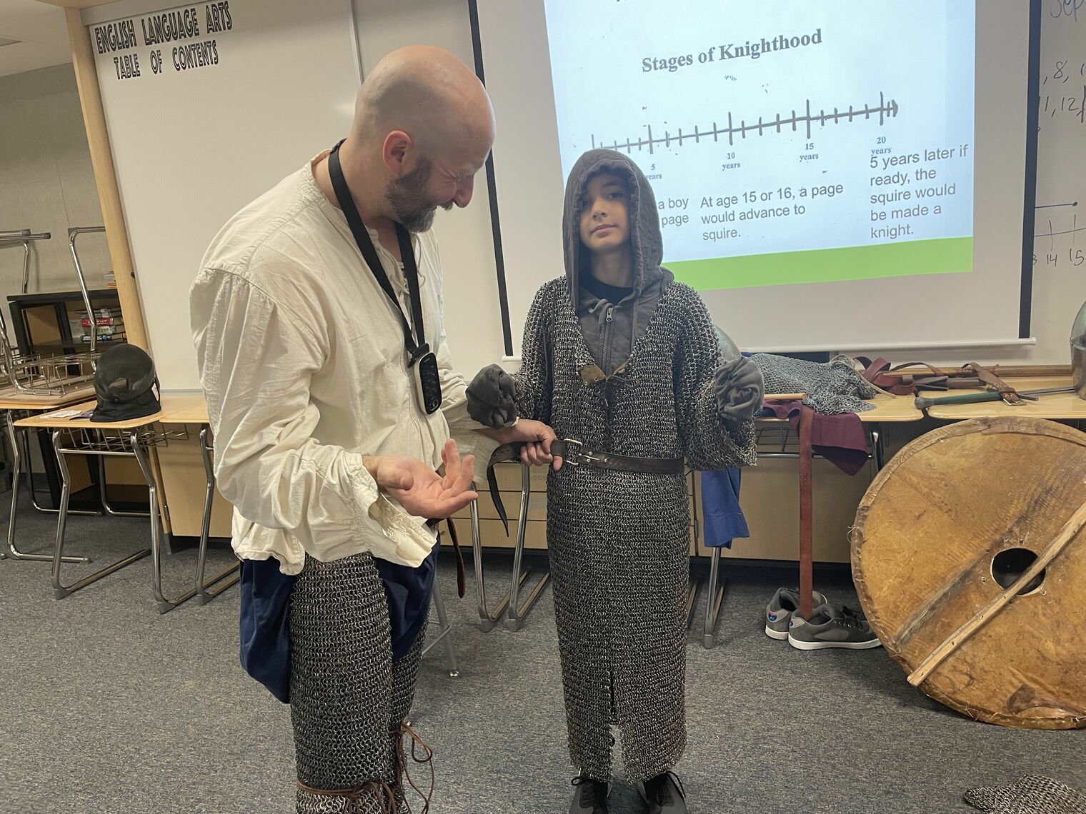 Middle school social studies content covers what can be termed "the dawn of time." Bringing seventh grade standards alive, our very own Mr. Firenze worked with a local group to help our students experience aspects of medieval time.